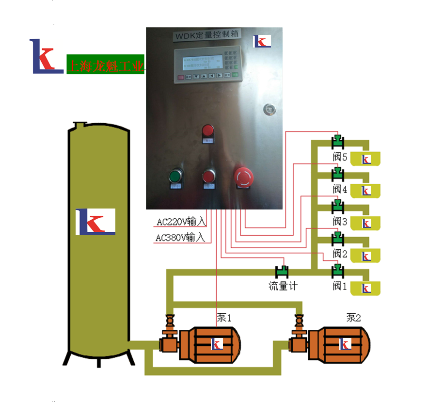 ? ? ???上海龍魁工業(yè)技術(shù)有限公司的文本式PLC可編程定量控制柜、?LKD觸摸屏PLC變頻定速定量控制柜、WDK文本式PLC可編程定量控制柜及文本式PLC可編程定量控制柜系統(tǒng)、WDK型文本或觸摸屏式PLC定量控制系統(tǒng)、WDK文本式觸摸屏PLC定時(shí)定量恒量控制柜(箱)、WDK文本式觸摸屏PLC帶打印變頻恒量控制柜(箱)、WDK觸摸屏PLC定量灌裝控制系統(tǒng)、WDK觸摸屏PLC定量配發(fā)料控制系統(tǒng)的其他定量控制配套產(chǎn)品都要根據(jù)現(xiàn)場(chǎng)流體的物理/化學(xué)屬性、周圍環(huán)境、以及具體要求來選擇合適的高精度流量計(jì)(如電磁流量計(jì),渦輪流量計(jì),齒輪流量計(jì),質(zhì)量流量計(jì)等)來測(cè)量流量,?根據(jù)測(cè)量介質(zhì)、管道口徑、流量范圍、控流量大小、電機(jī)與泵的速度、防腐、防爆、防護(hù)等級(jí)等參數(shù)和要求進(jìn)行設(shè)計(jì)及配置選型WDK文本式或觸摸屏定量控制柜(箱)及WDK文本式或觸摸屏定量控制系統(tǒng)