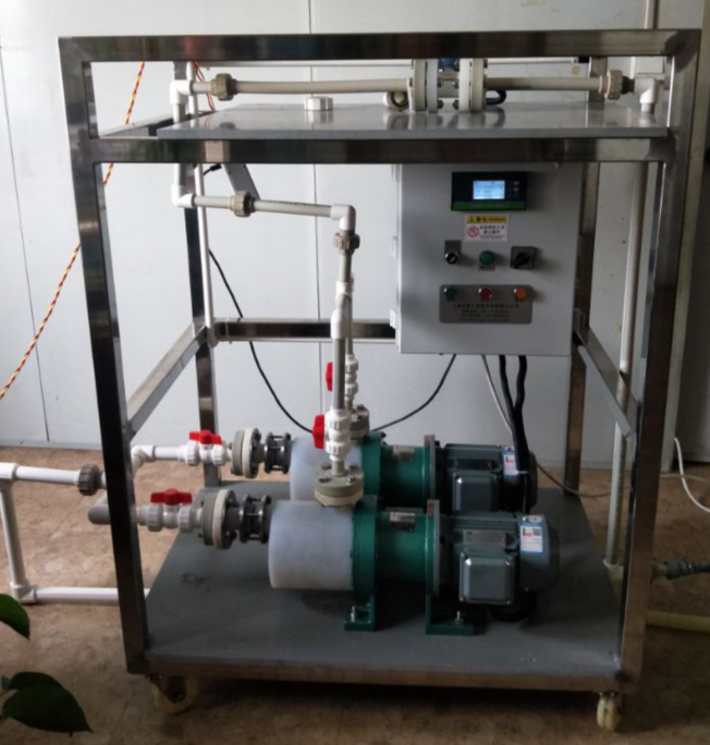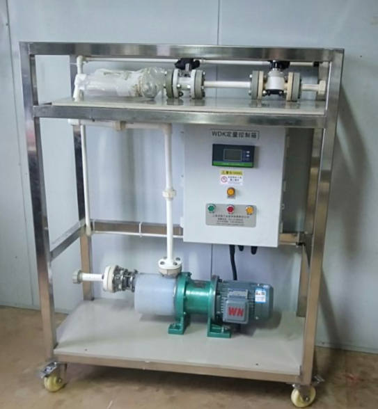 WDK氯化鈉配發(fā)料定量控制箱在單泵定量控制系統移動小車上的安裝使用的實物圖如下: